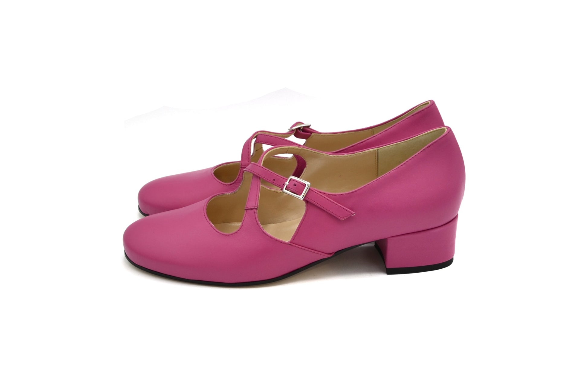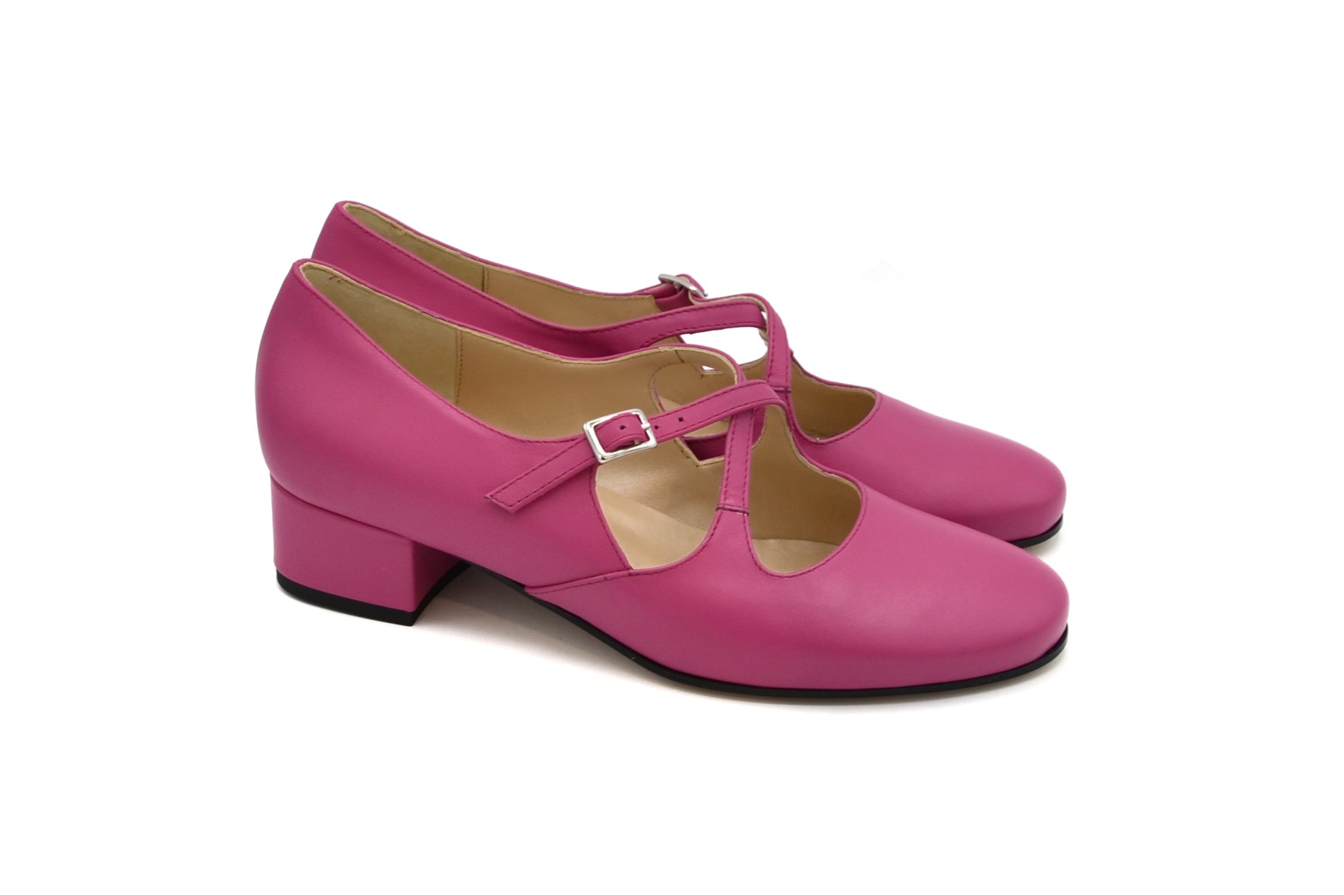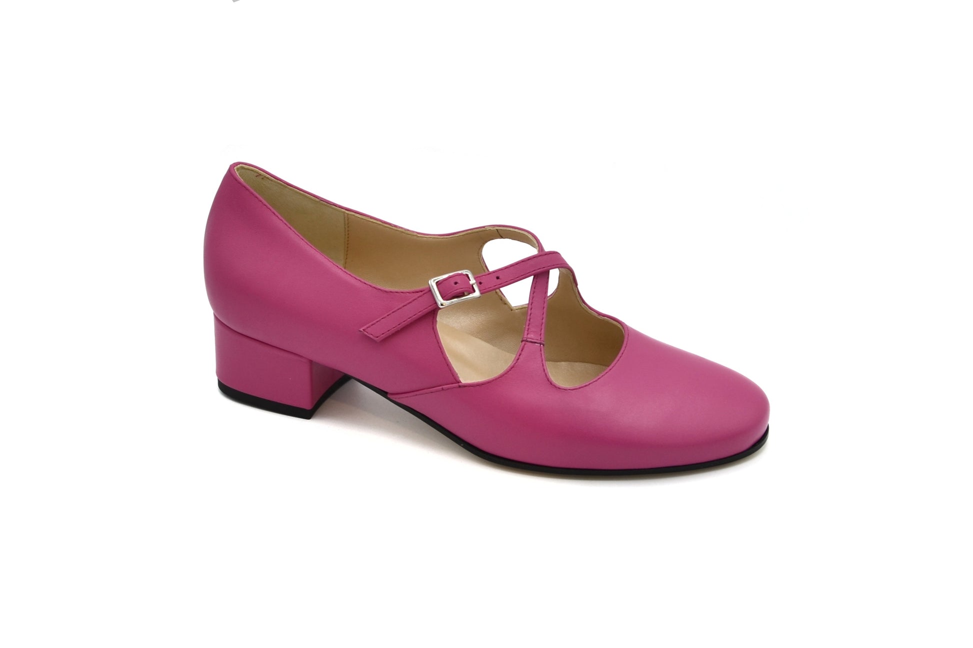 The Iris décolleté shoes made of leather with a Charleston strap.