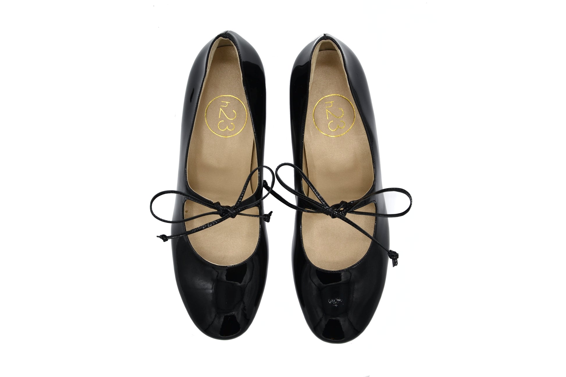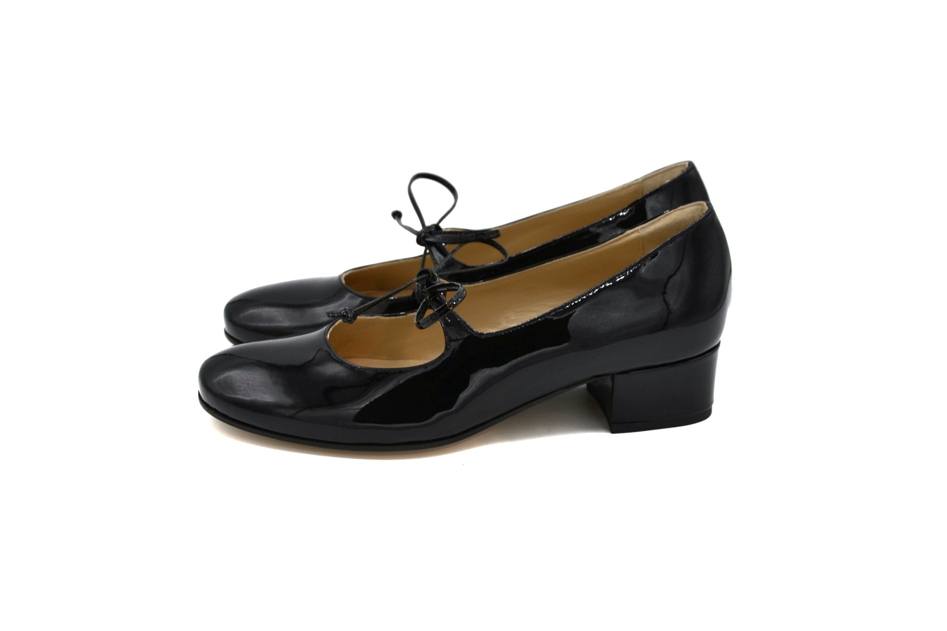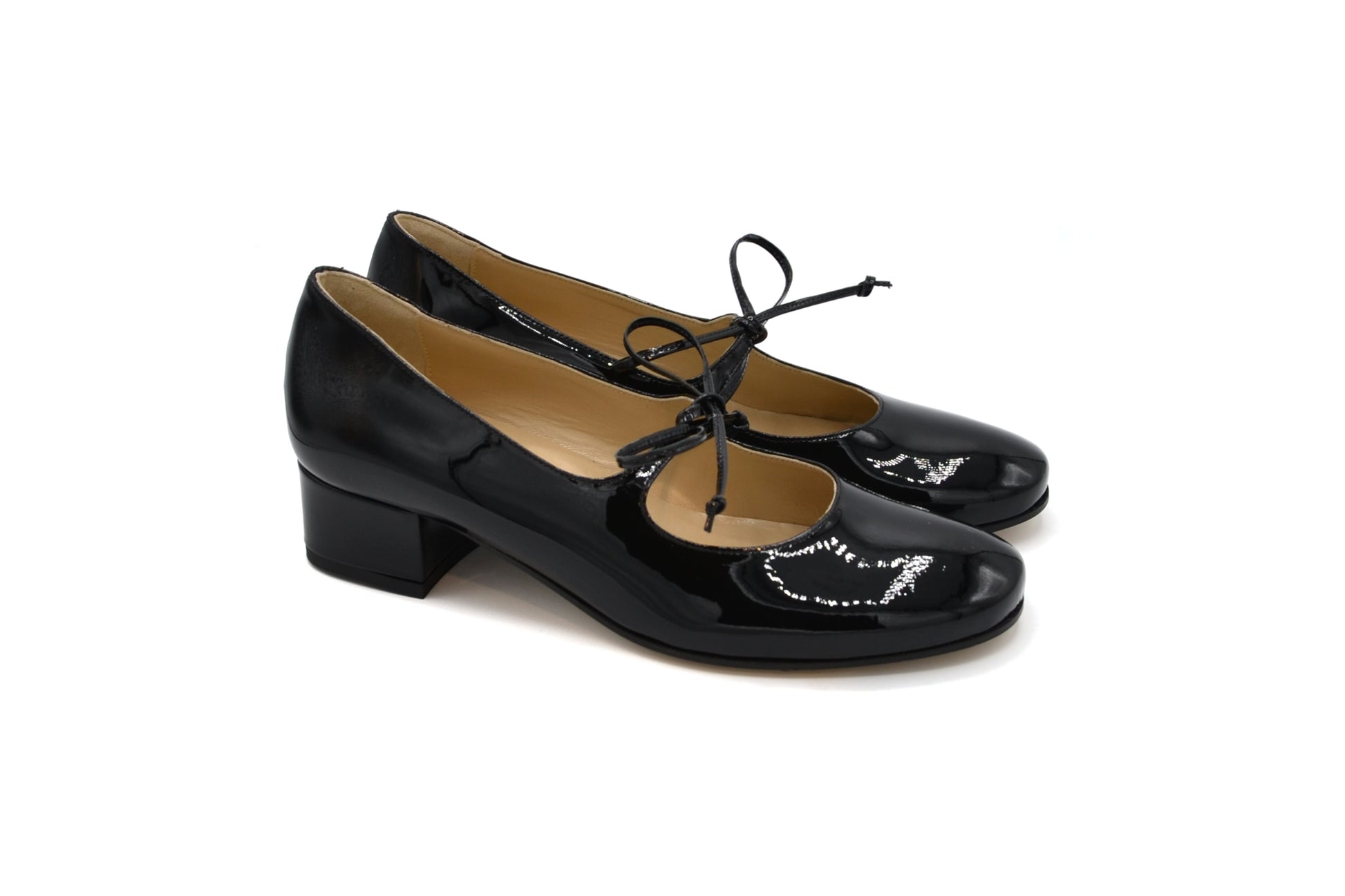 Le décolletés Clara realizzate in pelle in vernice con lacci regolabili.