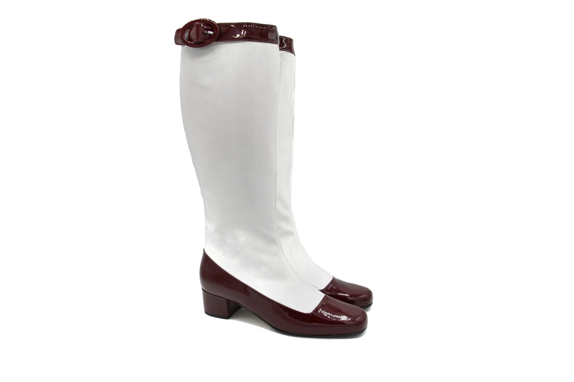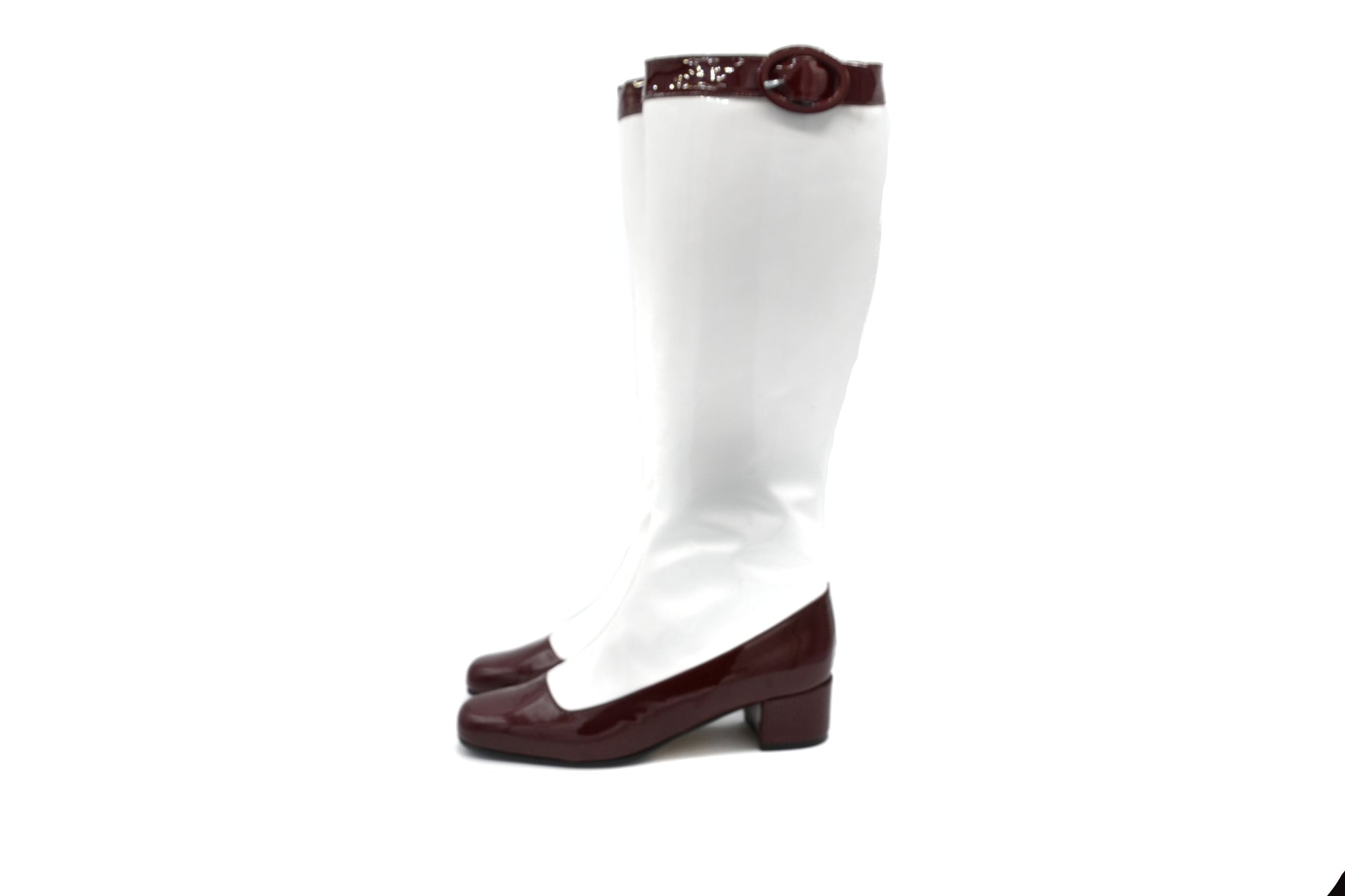Gli stivali Bice realizzati in pelle in vernice con fibbia al gambale.