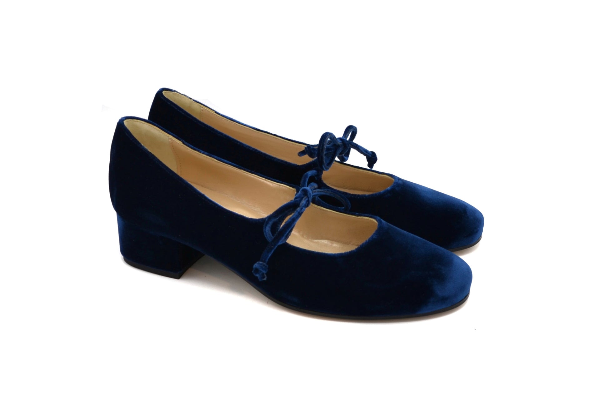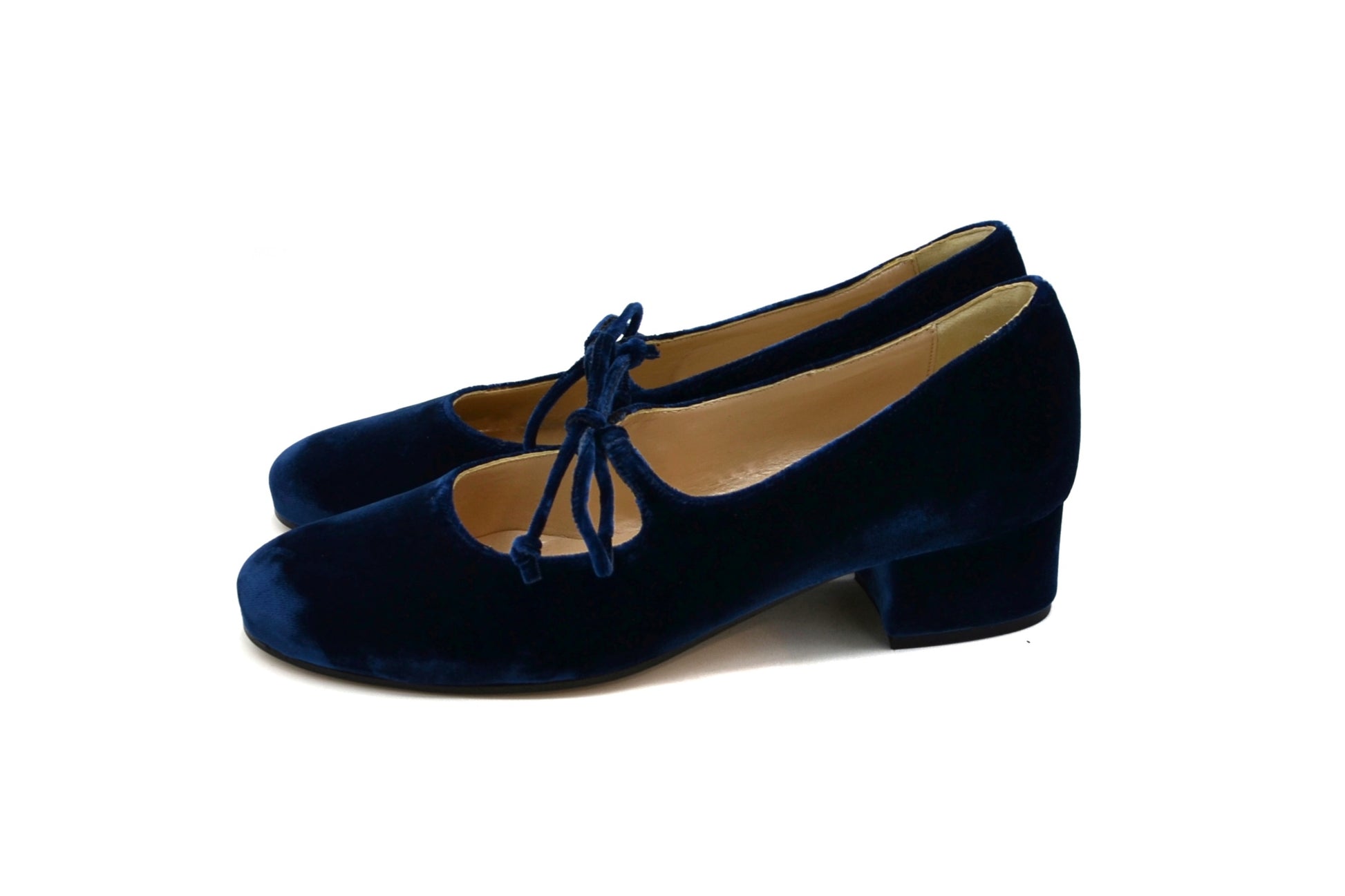 Le décolletés Clara realizzate in velluto con lacci regolabili.