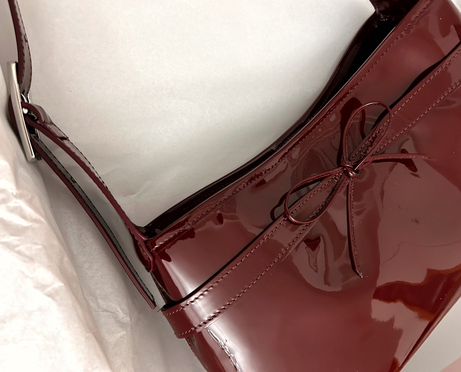 Ines, la nostra nuova borsa a mezzaluna dalla silhouette arrotondata, morbida ma con una linea elegante e pulita una misura perfetta, capace di contenere tutto ciò che vi è prezioso, restando leggera, armoniosa, sempre discreta. La sua ampia luce permette di indossarla con naturalezza , anche avvolte in un cappotto nelle mattine d’inverno. La chiusura a bottone è semplice, essenziale E poi c’è lui… il fiocco, la firma inconfondibile di Ines.