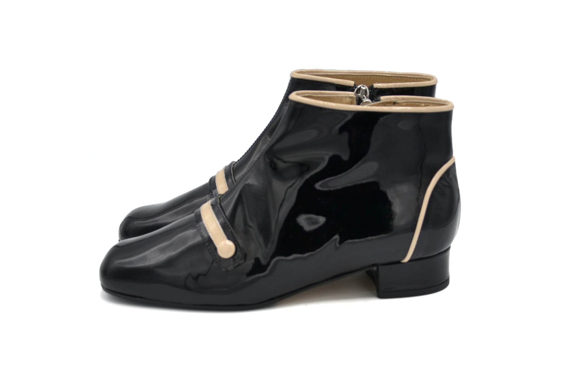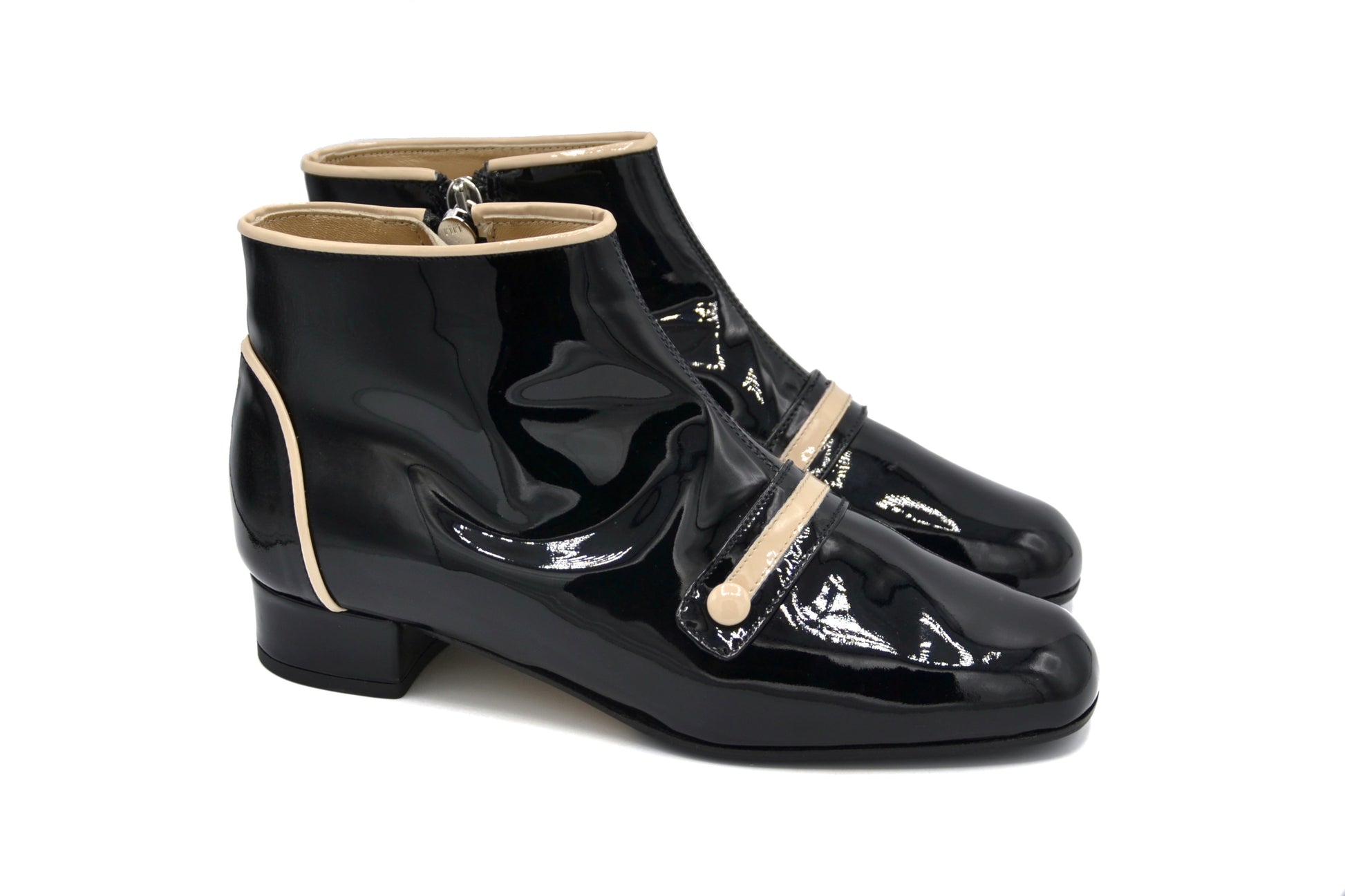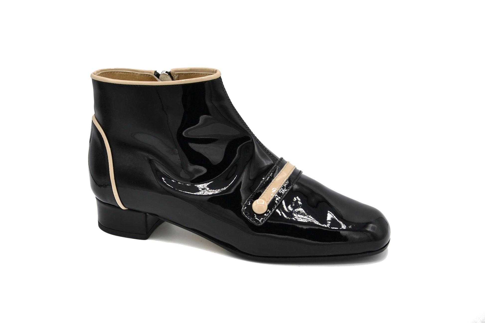 Gli stivaletti Teti realizzati in pelle in vernice.