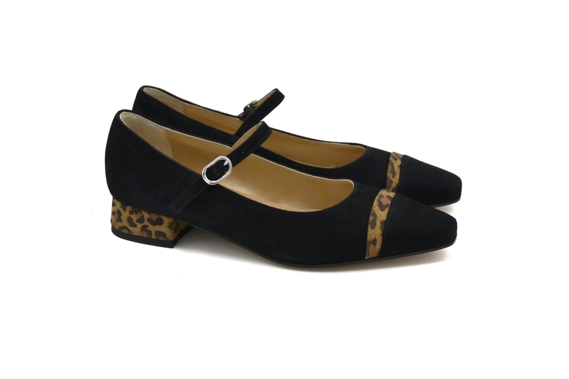 Le décolletés Zoe realizzate in pelle scamosciata con tacco e inserto in pelle scamosciata maculata.