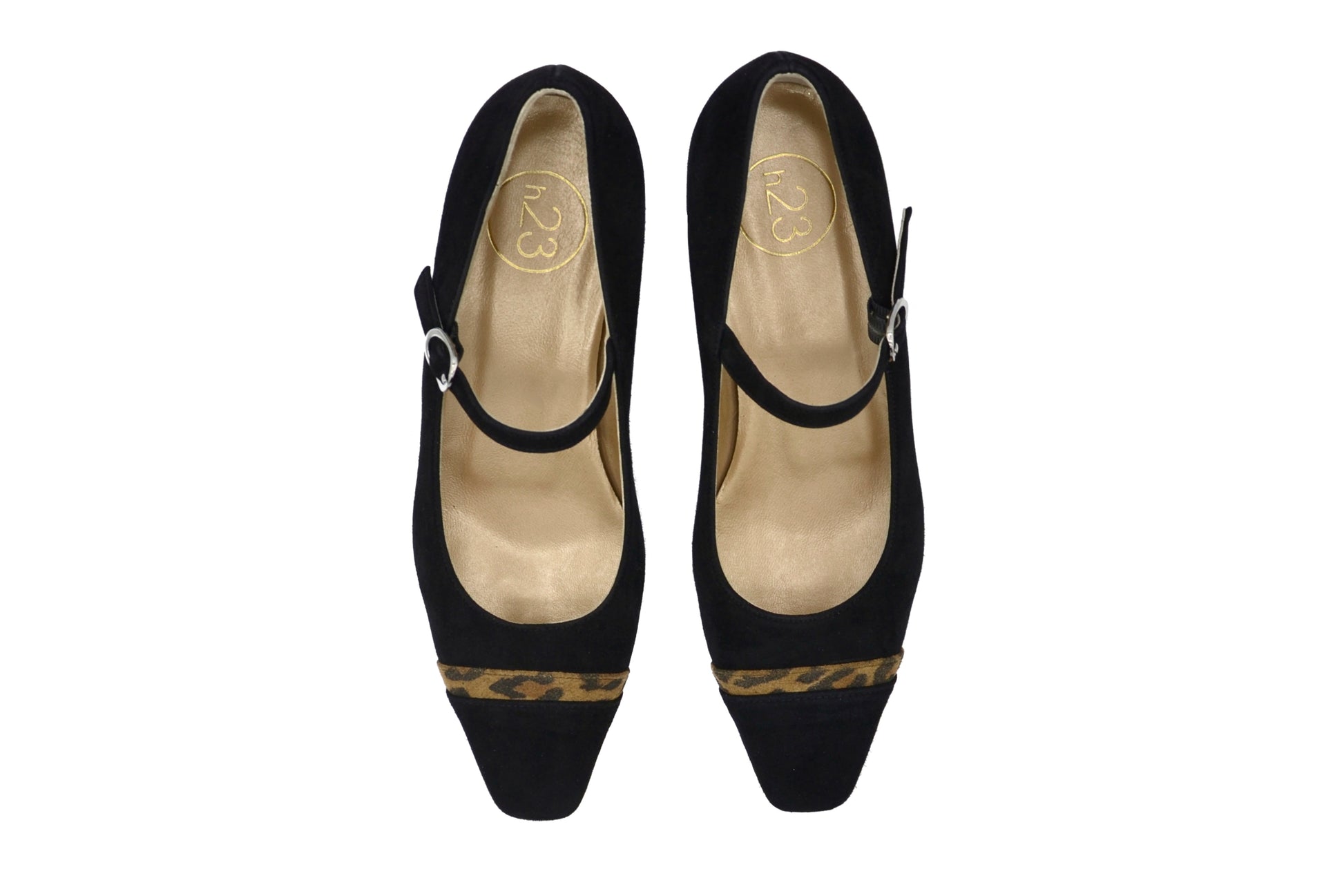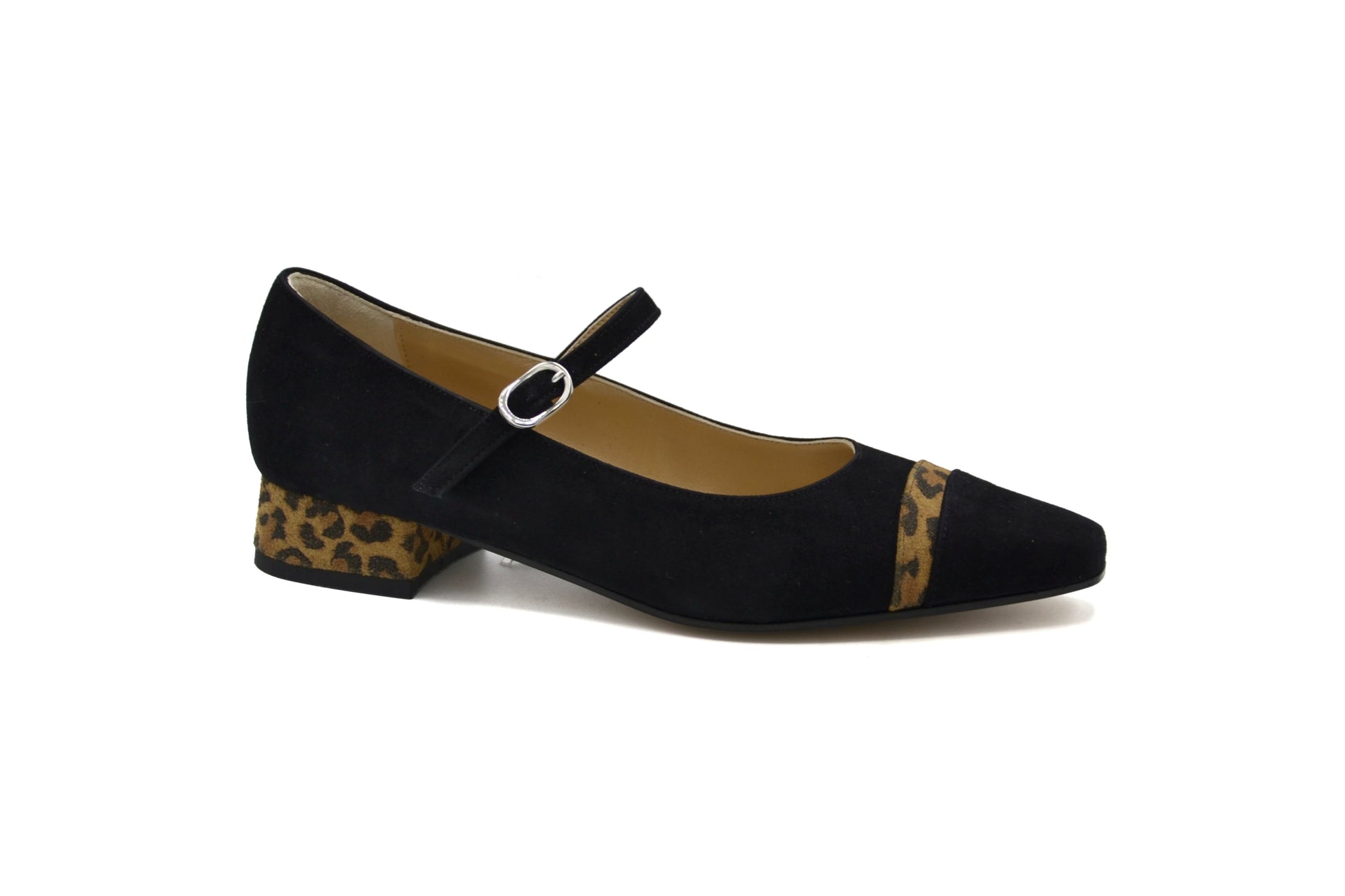 - Tacco rivestito in pelle scamosciata, altezza 25 mm